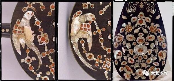 以大多是用镶嵌的工艺。螺钿,是中国传统的工艺方式,将贝壳类动物的壳制成小片,镶嵌或粘贴在器物表面,